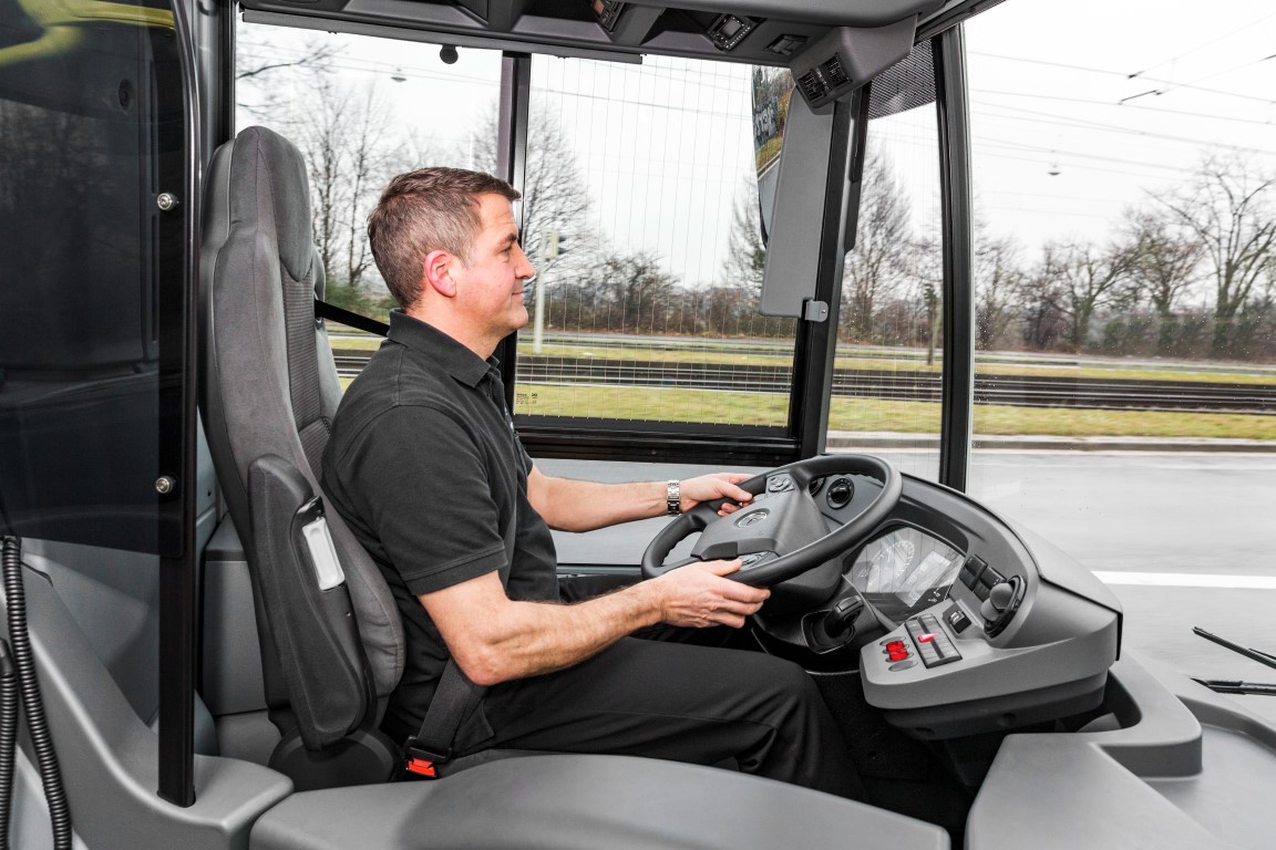 Ο έλεγχος της θερμοκρασίας στον χώρο εργασίας του οδηγού γίνεται ξεχωριστά και με μια εντελώς διαφορετική στρατηγική, λαμβάνοντας υπόψη ότι ο οδηγός περνά πολλές ώρες μέσα στο λεωφορείο. Άρα οι προσδοκίες για ακρίβεια στις θερμοκρασίες είναι μεγαλύτερες σε σχέση με τον θάλαμο επιβατών, όπου οι επιβάτες διαμένουν για πολύ μικρό διάστημα και πάντα ντυμένοι ανάλογα με τις καιρικές συνθήκες.