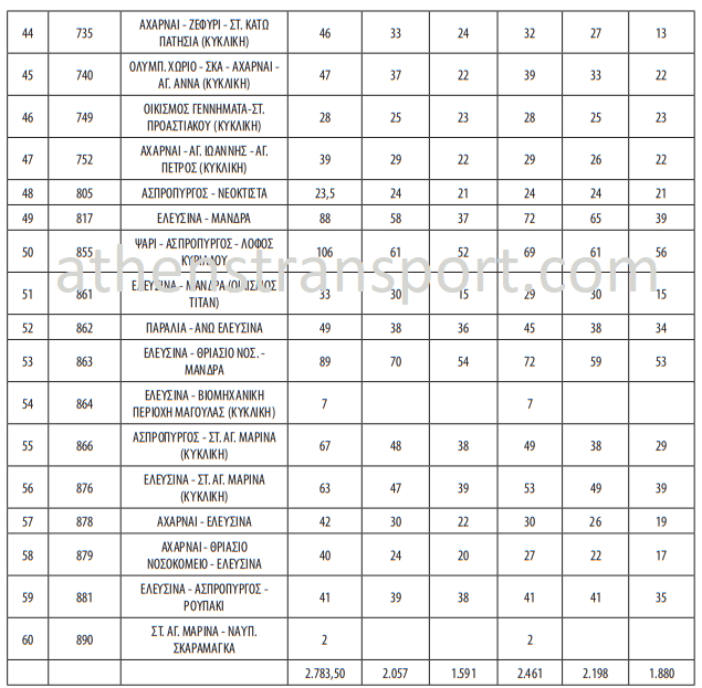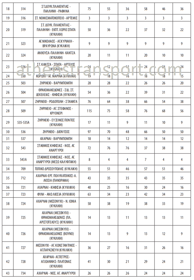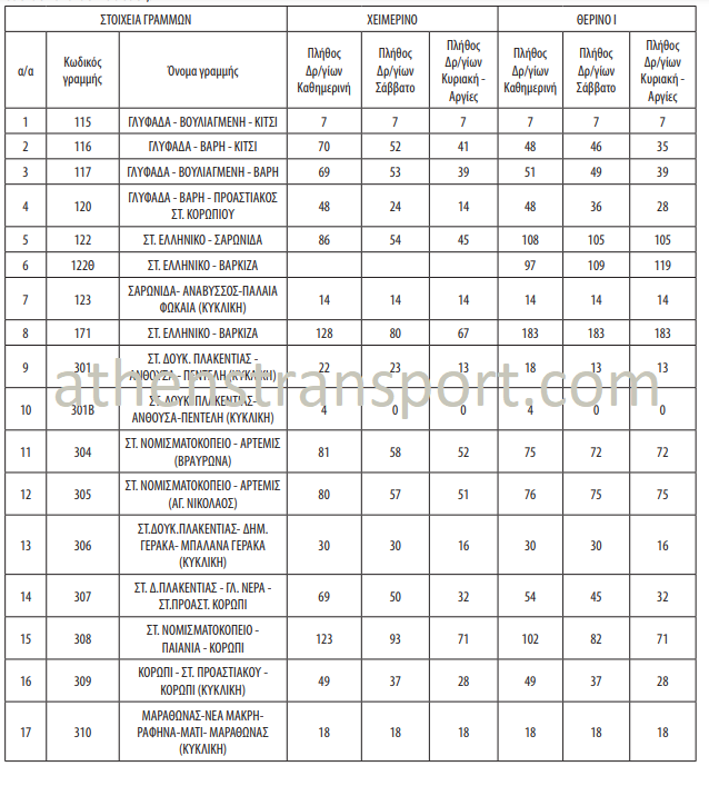 Ακολουθούν οι πίνακες με τον αριθμό των δρομολογίων που θα εκτελούνται στο χειμερινό και το θερινό πρόγραμμα.