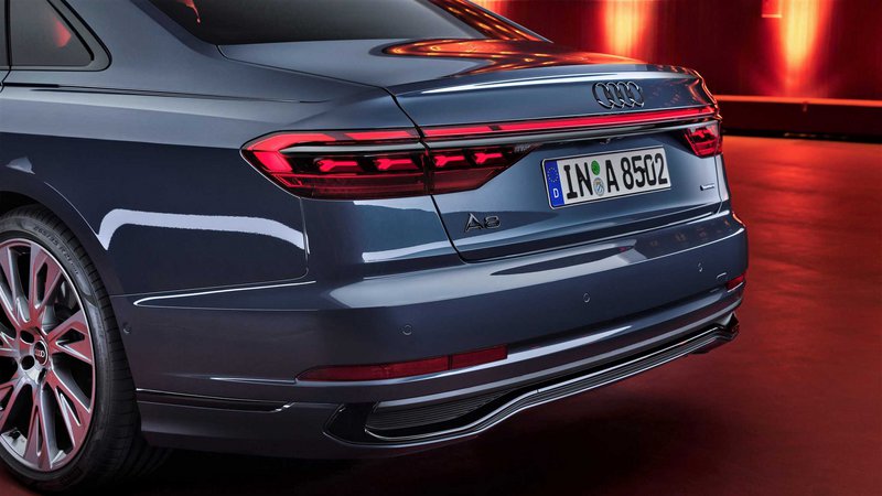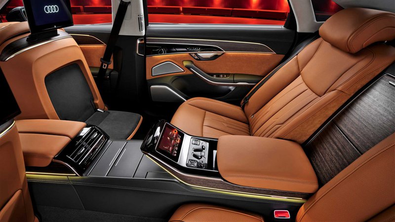 Με τεχνολογία βιντεοπροβολέων, οι προβολείς Digital Matrix LED χρησιμοποιούν τεχνολογία DMD με κάθε προβολέα να έχει περίπου 1,3 εκατομμύρια κάτοπτρα, τα οποία διαχέουν το φως σε μικροσκοπικά pixel ενώ τα πίσω φώτα είναι τεχνολογίας OLED ως στάνταρ. Σε συνδυασμό με τα συστήματα υποβοήθησης, τα ψηφιακά πίσω φώτα OLED διαθέτουν χαρακτηριστικό ένδειξης εγγύτητας. Η αρχιτεκτονική του εσωτερικού είναι οριζόντια για να τονίσει το πλάτος του αυτοκινήτου. Στο σκοτάδι, το πακέτο φωτός περιβάλλοντος plus διαμορφώνει κομψά το εσωτερικό και υπάρχουν φώτα ανάγνωσης στο πίσω μέρος που χρησιμοποιούν τεχνολογία Matrix LED. Η γκάμα καθισμάτων και εξοπλισμού καθισμάτων στο νέο Audi A8 είναι αναβαθμισμένη ειδικά για τα πίσω καθίσματα, όπου υπάρχουν πολλές επιλογές.